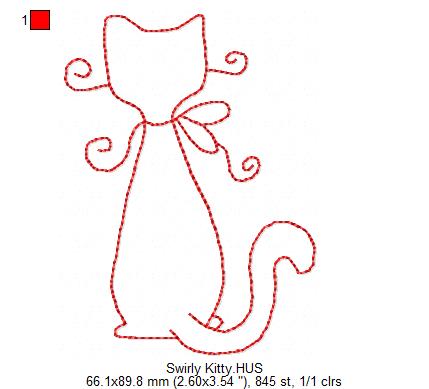 Swirly Kitty Redwork